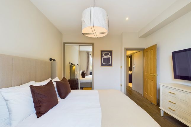 The bedroom is appointed with a luxurious king-size bed and an additional TV for added entertainment, while the contemporary bathroom features both a bath and a shower, offering the ideal setup for relaxation at the end of the day.