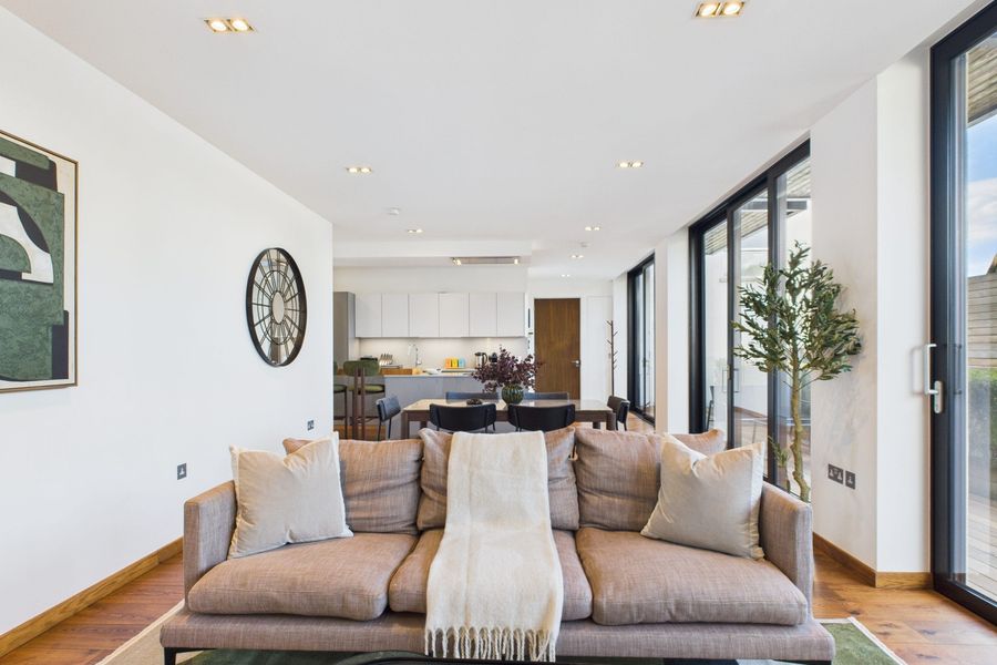 Discover this stylish two-bedroom, two-bathroom apartment, designed with a modern, creative edge. Located on the first floor of a contemporary warehouse conversion, the open-plan living and dining area features a plush sofa, Smart TV, dining table, and a fully equipped kitchen with high-spec appliances—perfect for relaxing or entertaining.