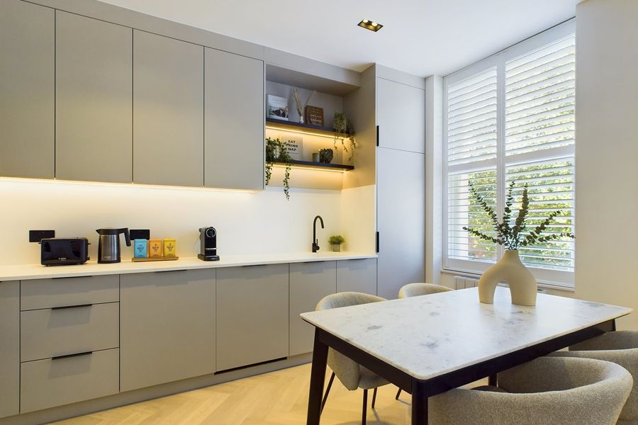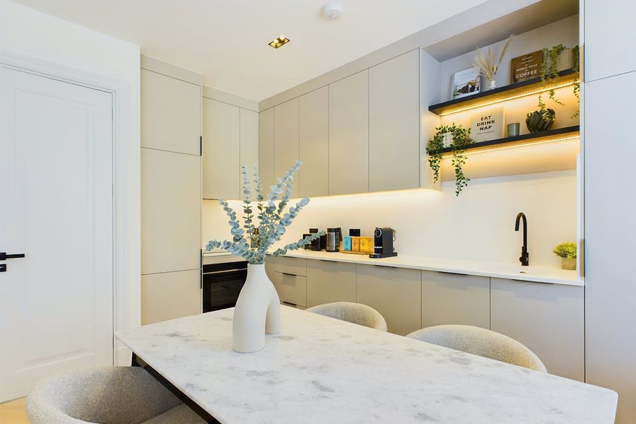 This beautifully presented apartment boasts a bright and airy open-plan living, dining, and kitchen area, enhanced by natural light throughout.