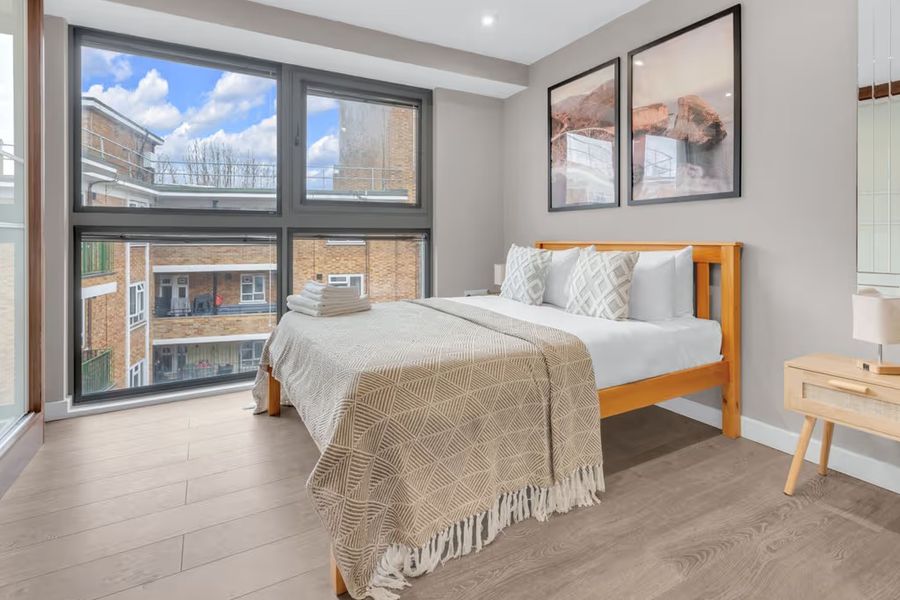 From £150/night, enjoy a sleek 1- or 2-bedroom apartment in the heart of Hoxton. These stylish units feature open-plan living areas with wooden floors, modern furnishings, and balconies overlooking Shoreditch Park. Bedrooms are carpeted for added comfort, and each apartment includes a fully equipped kitchen with washer/dryer.